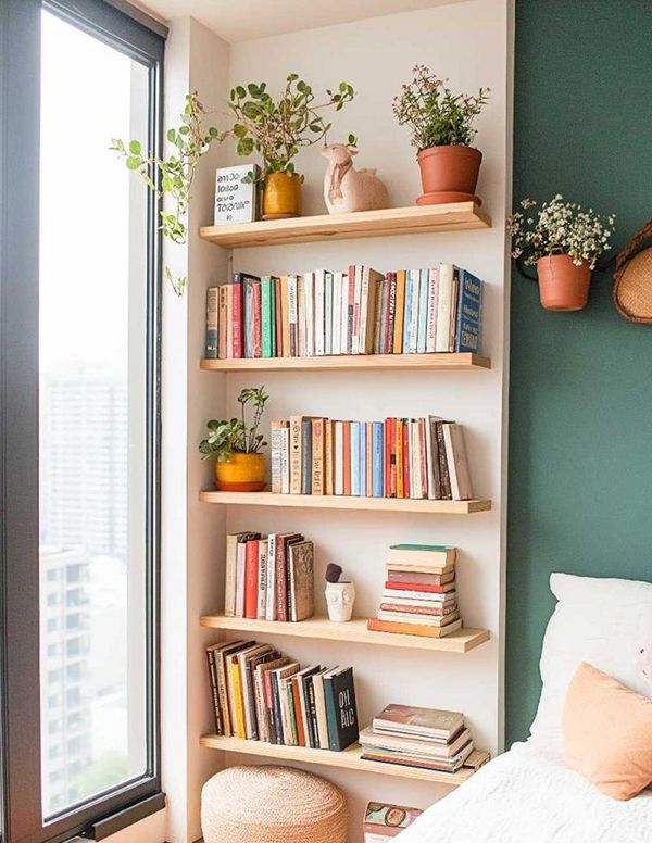 Se o espaço permitir, misture livros com objetos afetivos, fotos ou plantas. Isso deixa tudo mais leve e pessoal.