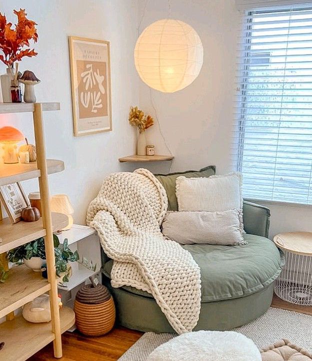 Legenda: Um cantinho da leitura no quarto traz calma e aconchego. Reprodução: Pinterest.