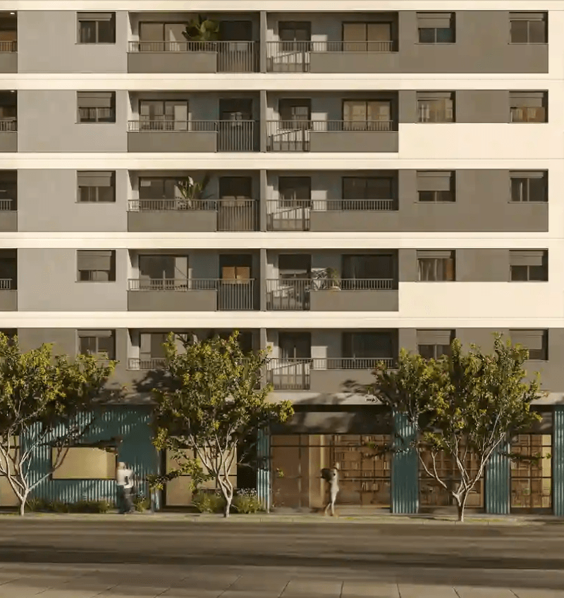 Perspectiva artística do pórtico do empreendimento Today Tatuapé.